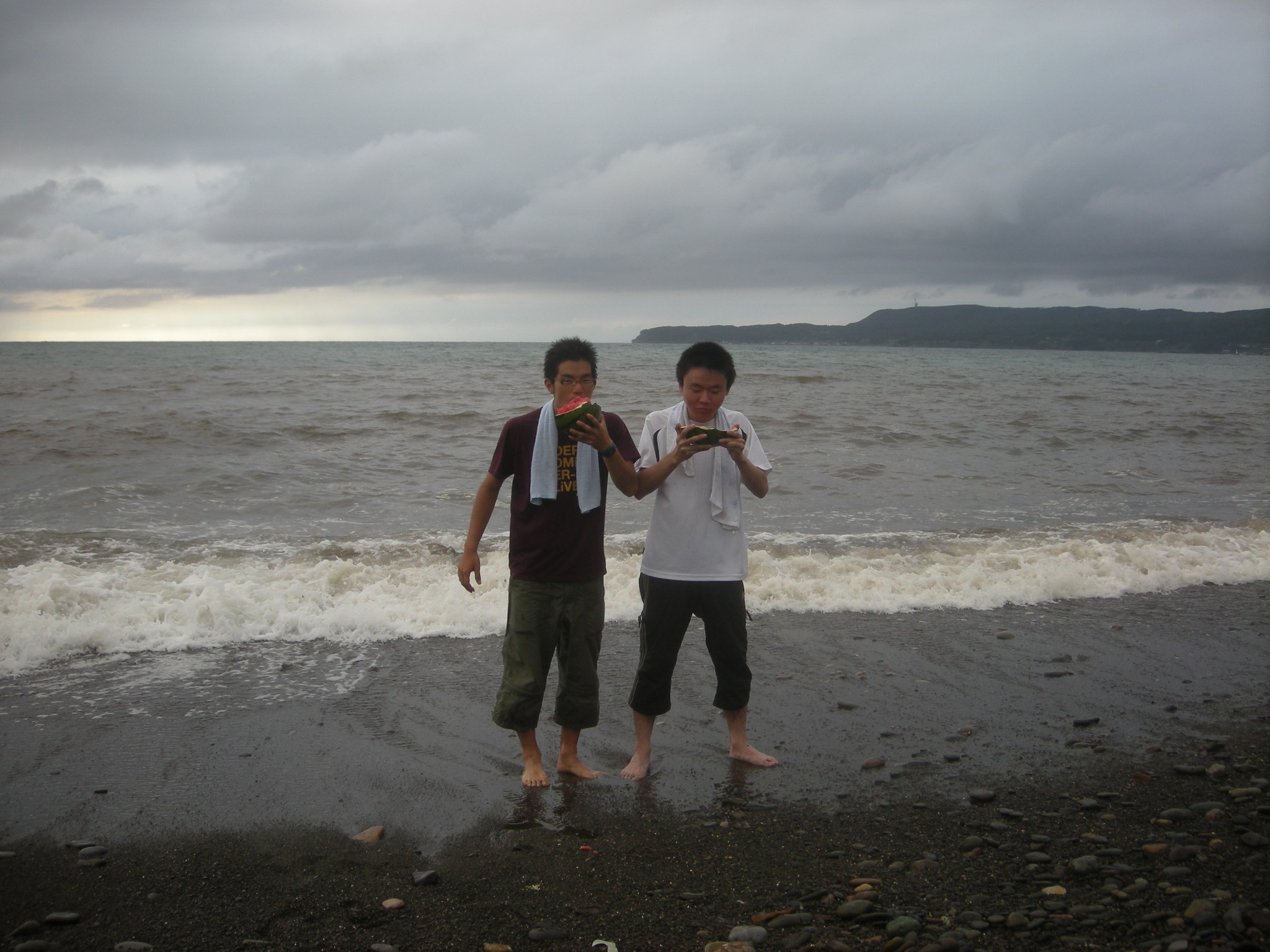 8月23日晚,我与他在十二湖站相会。放完行李后,在附近的海边合影。