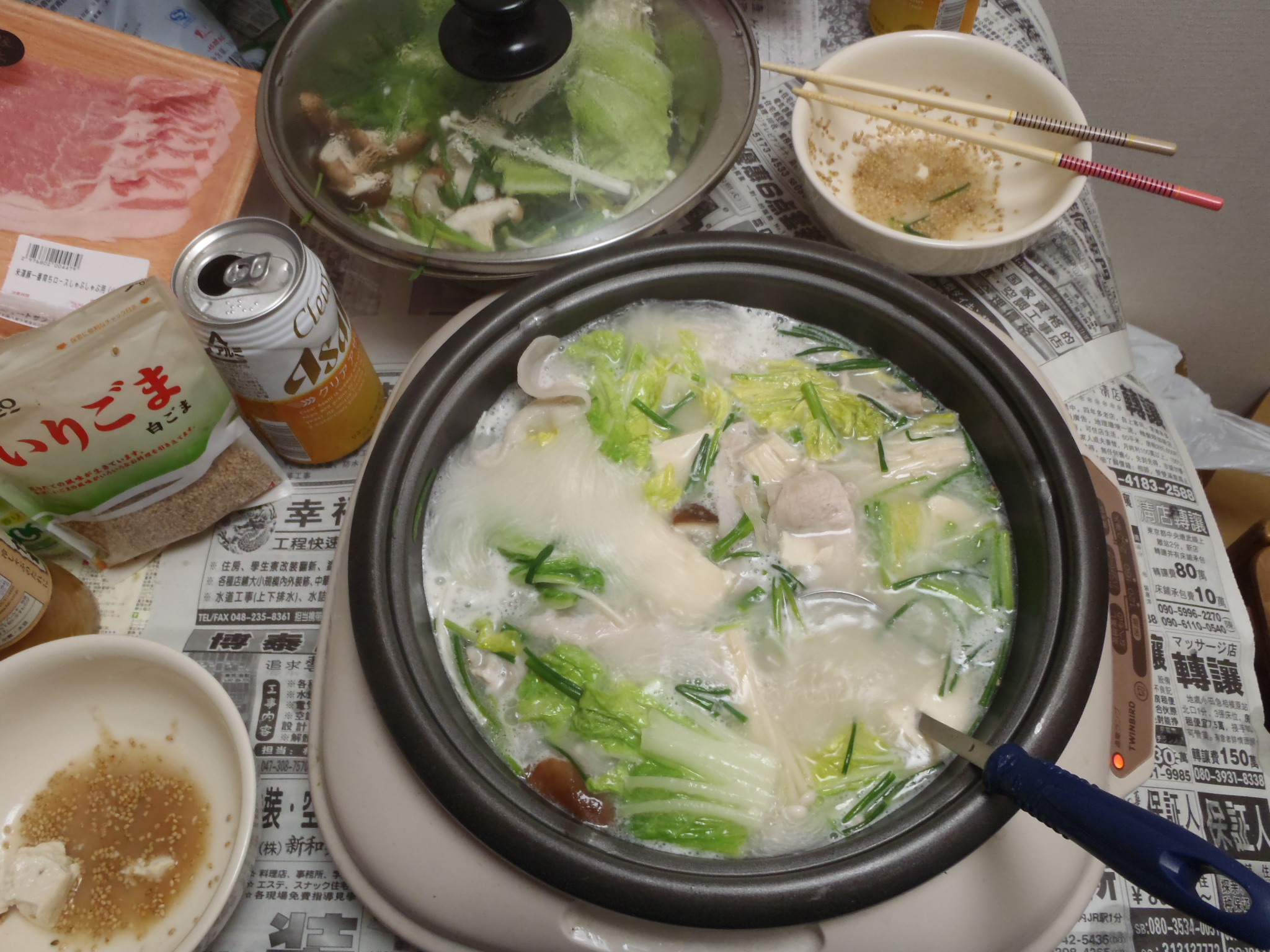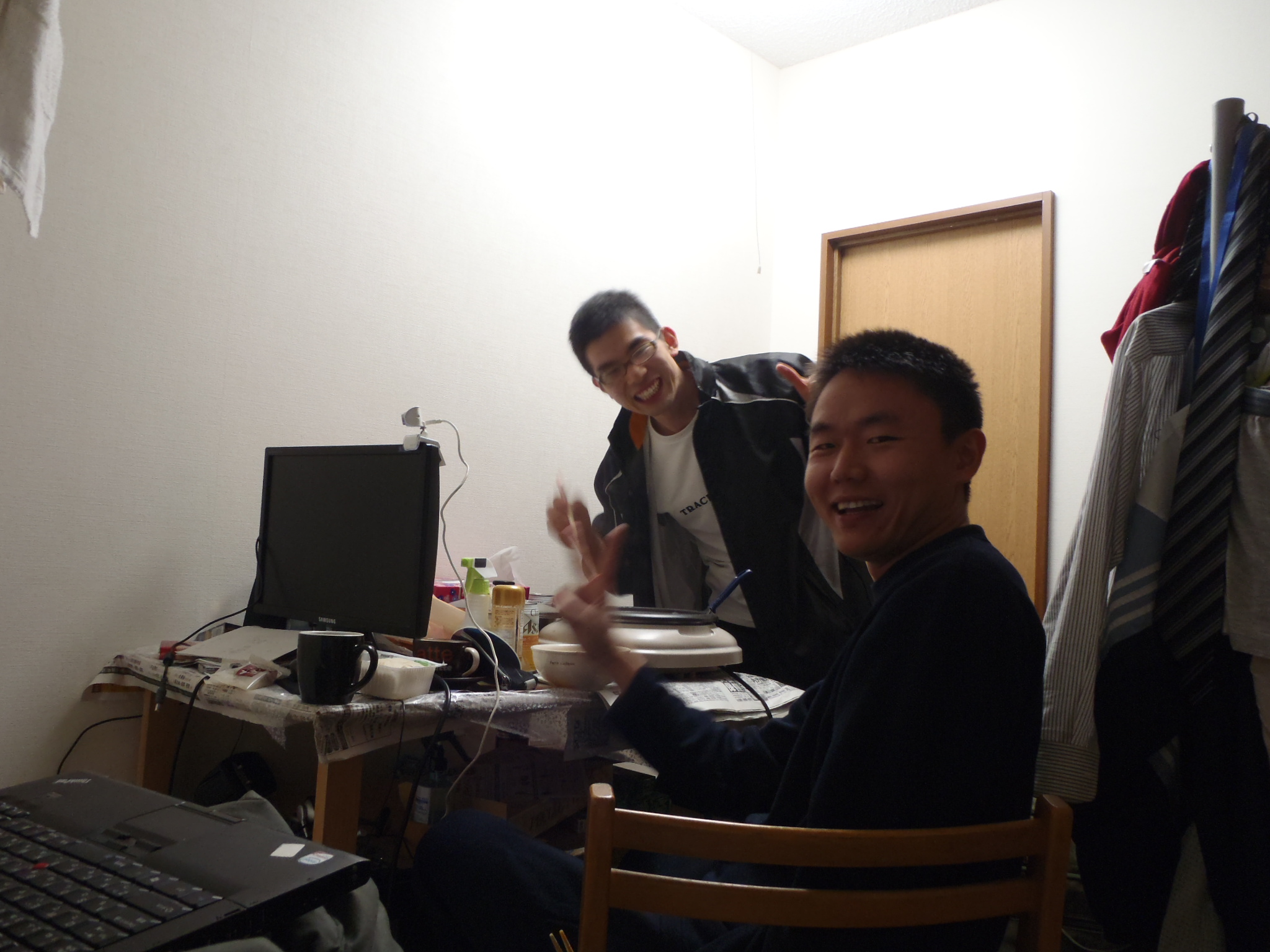 正彦下个月5号就要作为日本的志愿者奔赴非洲的赞比亚进行为期两年的教育支援。本周四刚从福岛县培训回来,周六我俩就见面了。这是我们昨天在我家吃火锅的照片。