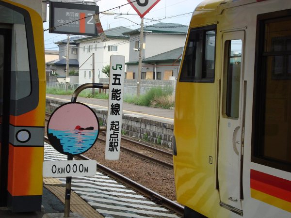 五能线的起点站——东能代站,从这里,列车将沿着日本海海岸一直向北行驶……