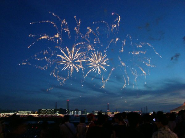 这次去的是离我所在城市最近的户田—板桥花火大会。会场在东京都荒川区和琦玉县户田市的分界河上,两个地区同时举办。