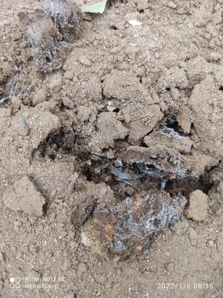 就在我们返回家的时候,牛牛在第三公园的小公园的树下发现了很多土翻了出来。我正好奇观望,还自言自语到,天气冷的冻的土都裂开了。没想到牛牛去突然间叫了起来,“啊,シモバシラ!”。我好奇的走过去瞧他。原来他那不老实的小脚把冻裂了的土踢了起来,在土下发现的了小冰柱!真是误打误撞。。。这也算完成了一项作业吧,哈哈哈。